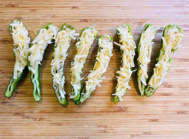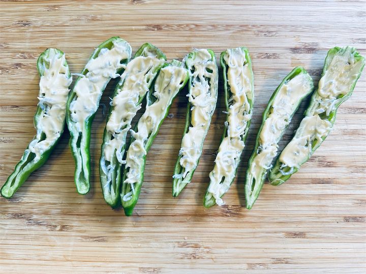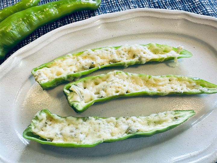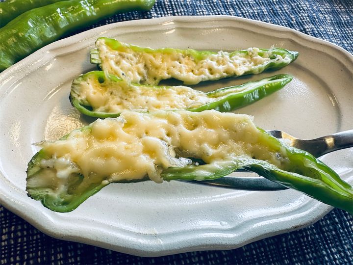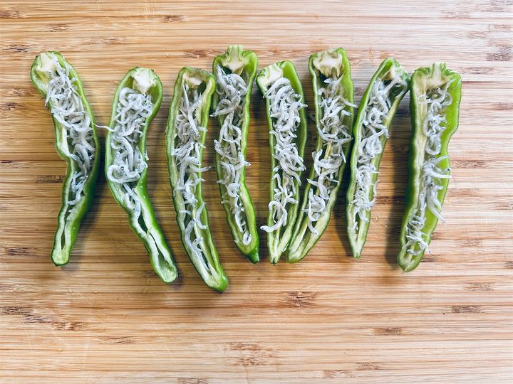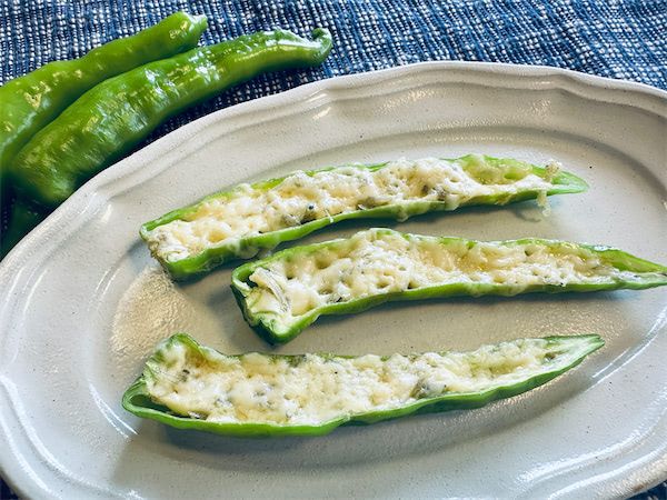 毎年夏になると、実家の家庭菜園で採れた「甘長とうがらし」がどっさり届きます。わが家ではグリルで焼いてしょうゆとかつお節でいただくのが定番ですが、「まだ手に取ったことがなくて…」という方のために、愛媛県の農家イチオシのレシピを紹介。それが「甘長とうがらしのちりめんマヨネーズ」です。甘長を縦半分にカットしたら、ちりめんじゃこ、マヨ、チーズの順にのせ、あとはチン! なるほど、これなら火を使わないから暑い時期に助かりますね。では、涼しい顔で調理スターティン♪