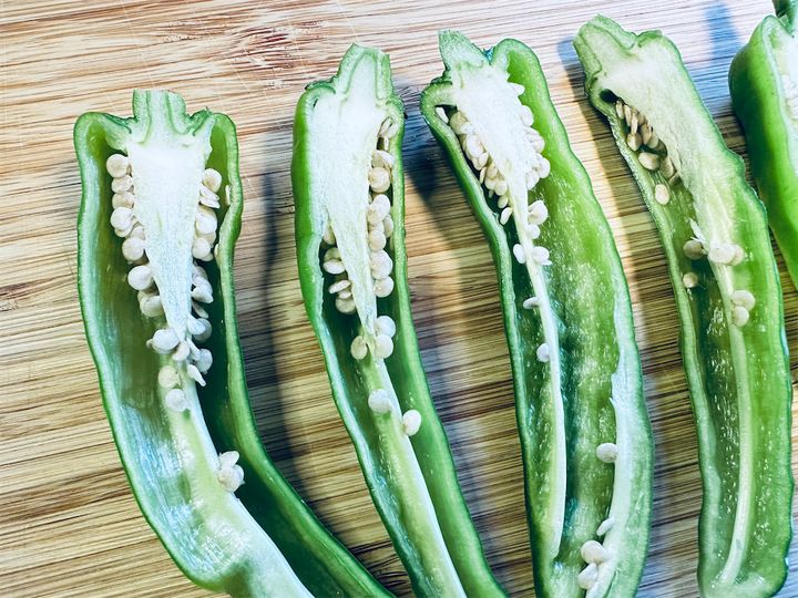農家さんから「甘長の種は苦くないんですよ。ぜひ種を取らずに調理してみてください」とアドバイスいただいたので、種を取らずに調理するバージョンも作ってみました。