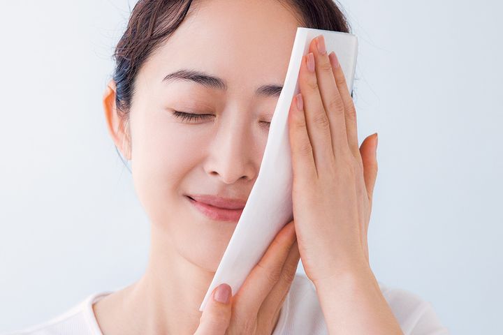 【手順1】皮脂残りが崩れのもとティッシュ1枚でテカリ断ち