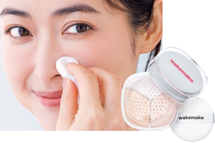 3色まんべんなくとり、スポンジに揉み込んだら、余分な粉はティッシュに落としてから肌にオン。小鼻など皮脂が出やすい場所はパフを折って馴染ませて。