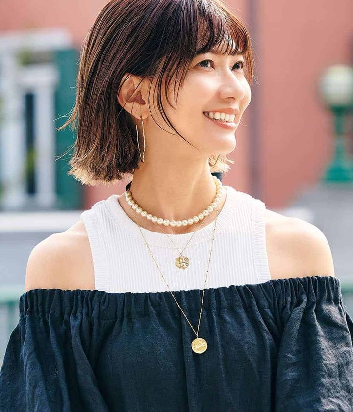 One-Piece: THE PAUSE Inner: THE PAUSE Bag: Bottega Veneta Shoes: Paolo Ferrara × TOMORROWLAND Necklace(パール以外): MARIHA Earrings: Lavish Gate