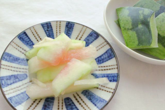 すいかの皮は緑色の硬い皮を取り除けば、瓜そっくりな味わいの野菜のよう。そこは、漬け物に向いている部分として活用出来ますよ。