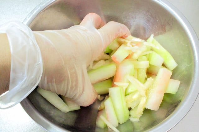 3. 1のしょうが、酢、砂糖を加えて軽く揉みます。