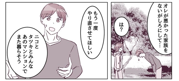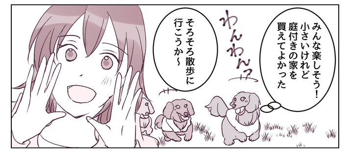 私は冷たく言い放つと、犬たちを連れてその場を後にします。リュウイチもそれ以上追いかけてきませんでした。タツキも3匹の犬たちも、私が守ってみせる……! その後私は、リュウイチが会いに来たことを両親に伝えました。