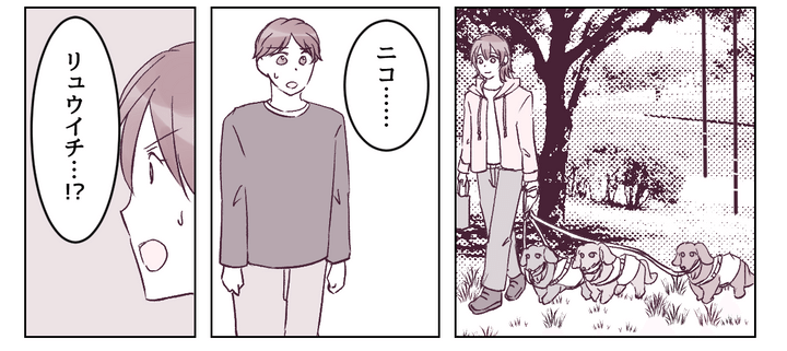 犬たちを散歩させていると、私を呼ぶ声が聞こえました。振り返るとそこにはリュウイチが立っています。私がアップした犬の動画を見て、実家近くの散歩コースで待ち伏せしていたのでしょう。リュウイチは私に向かって頭を下げます。
