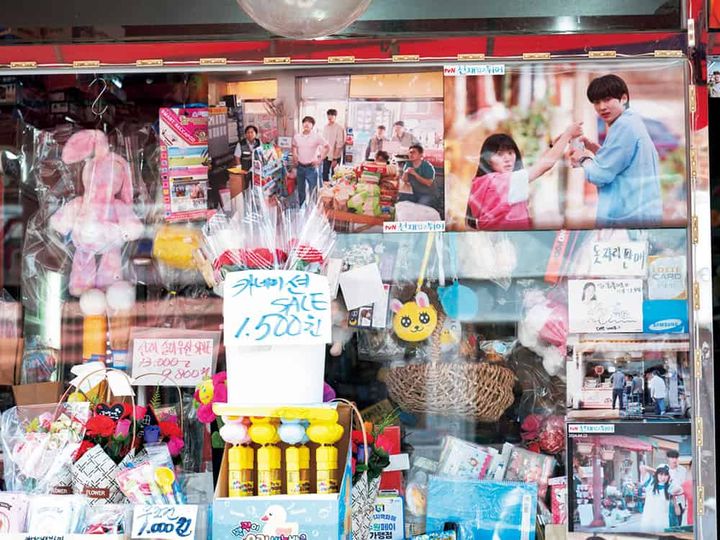 ドラマ「ソンジェ背負って走れ」の第5、6話で登場した華虹マート。ソンジェがソルの兄に飛び蹴りをくらうシーンや、マッコリを飲んで酔っ払ったシーンなどで使われていて、写真も飾られています。
