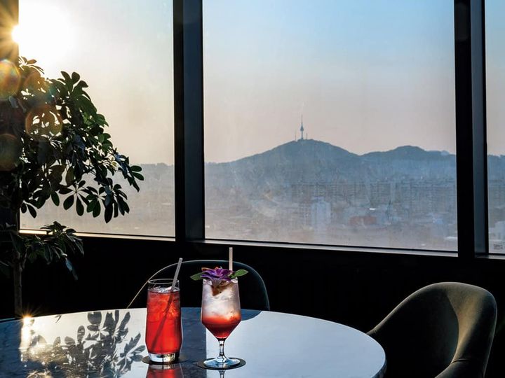 ガラス張りの店内からは漢江を一望北欧の名作椅子などインテリアも♡ デザイン事務所だったところを美しい眺望をシェアしたいとオープンしたカフェはコーヒーはもちろんデザートも絶品。ハイセンスな空間に満足間違いなし。