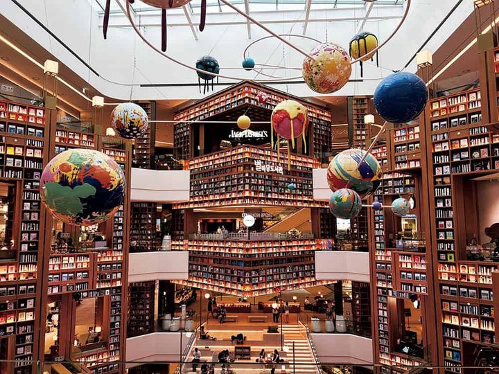 SNSで話題の図書館は一見の価値あり! 巨大ショッピングモールにある「ピョルマダン図書館」。オープン型ライブラリーで、コエックスの図書館とはまた雰囲気が違います。
