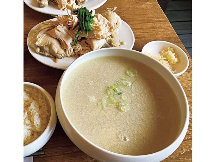 韓屋でいただく北朝鮮式の参鶏湯はしっとりとした鶏とクリーミーなスープW18,000。