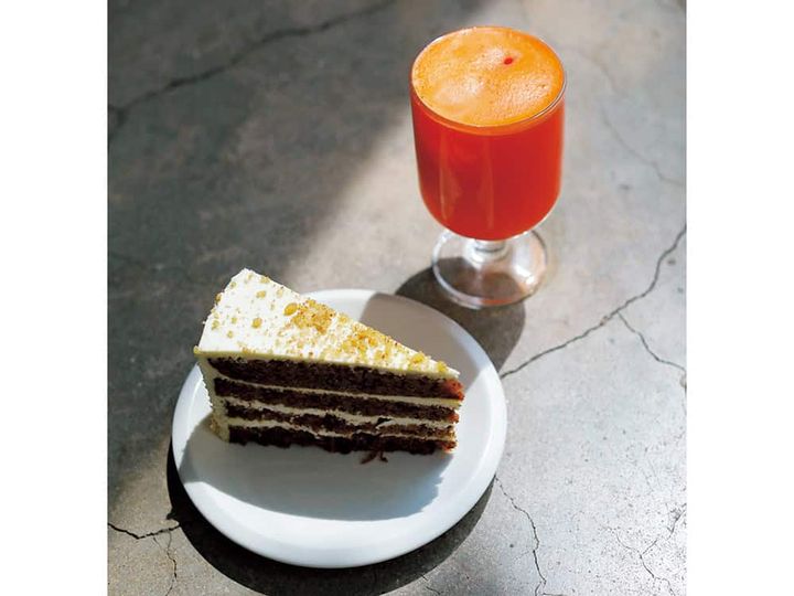フレッシュなキャロットジュースW8,000、キャロットケーキW7,000は人気メニュー。バナナブレッドW3,500もファンが多い