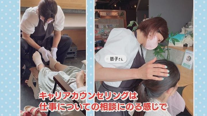 恭子さんは、国家資格のキャリアコンサルタントの知識を生かし、心と体のケアを行うセラピストとして活動しています。
