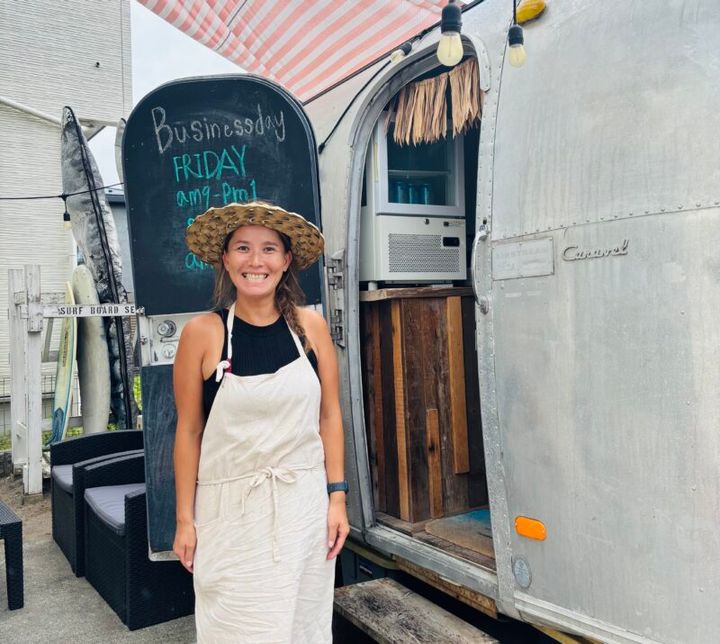 鵠沼海岸の住宅街に、突如現れるキャンピングトレーラー。カリフォルニアから運んできた、1965年製ヴィンテージのエアストリームが『MOANI』の店舗です。小さな入口をくぐると、店主の高橋彩さんがハッピーな笑顔で迎えてくれます。