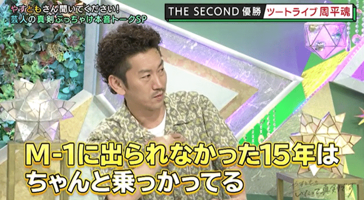 おなじみの“真剣ファミリー”ツートライブ・周平魂が「THE SECOND~漫才トーナメント~」優勝後、初のスタジオ出演でさらけ出したのは、チャンピオンの知られざる本音。この日のゲストで、2016年の「M-1グランプリ」チャンピオンでもある銀シャリから「よっ!チャンピオン!」と声をかけられ、「(まだ優勝が)ピンと来てないままで…」と照れくさそうな表情ながらもうれしさをにじませる周平魂。「THE SECOND」は銀シャリの2人もテレビで観戦したらしく、橋本は「めっちゃ興奮する大会」とファイナリストたちの熱のこもった戦いに気持ちが高ぶったという。そんな銀シャリに周平魂は「『THE SECOND』に出てる側の哀愁として、やっぱり“M-1に出られなかった15年”はやっぱり(肩に)乗っかってる」と明かして…。周平魂が「一生忘れられない」とぶっちゃける“悔しさ”の正体とは?