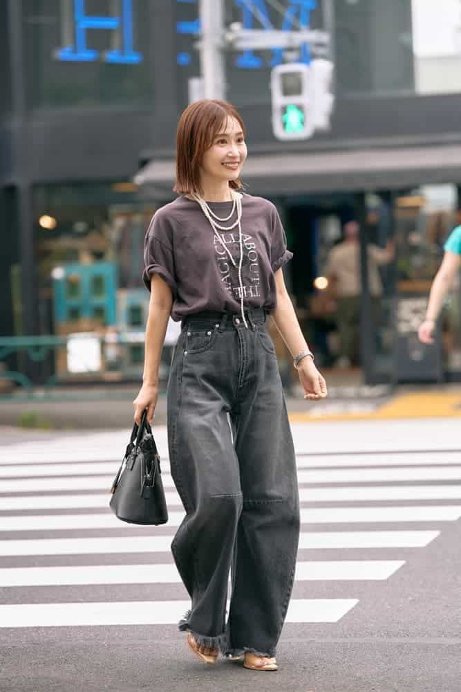 3. 流行りの「キャラトップス」を、40代がオシャレに着るには?<読者スナップ3選>