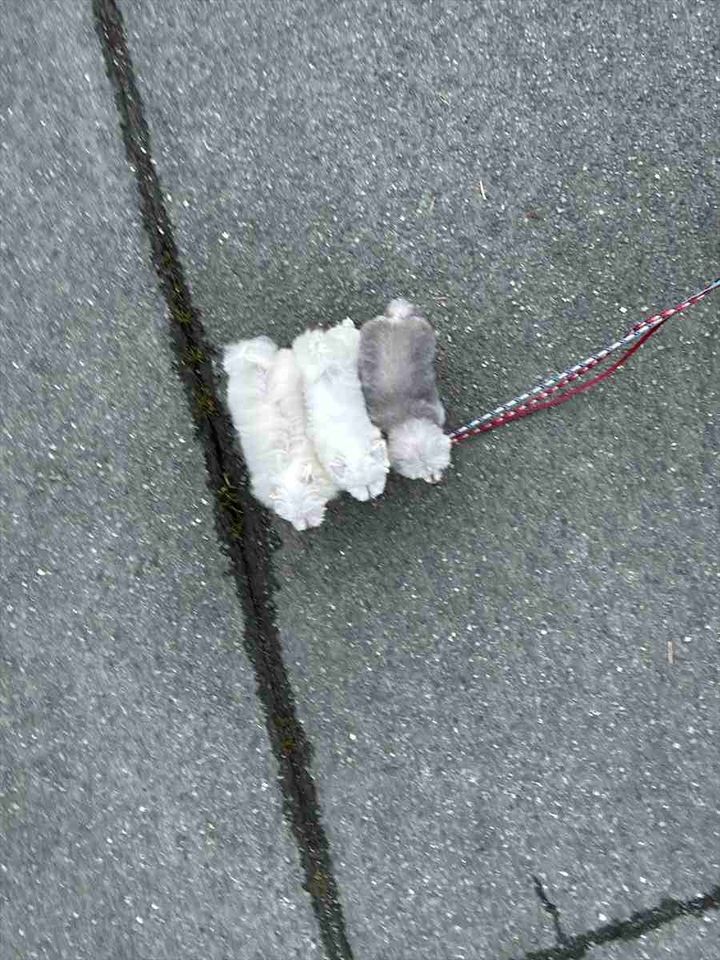 仲良くお散歩している愛犬たち。 くっついて歩くその姿が、握り寿司みたいに見えると話題になっています!
