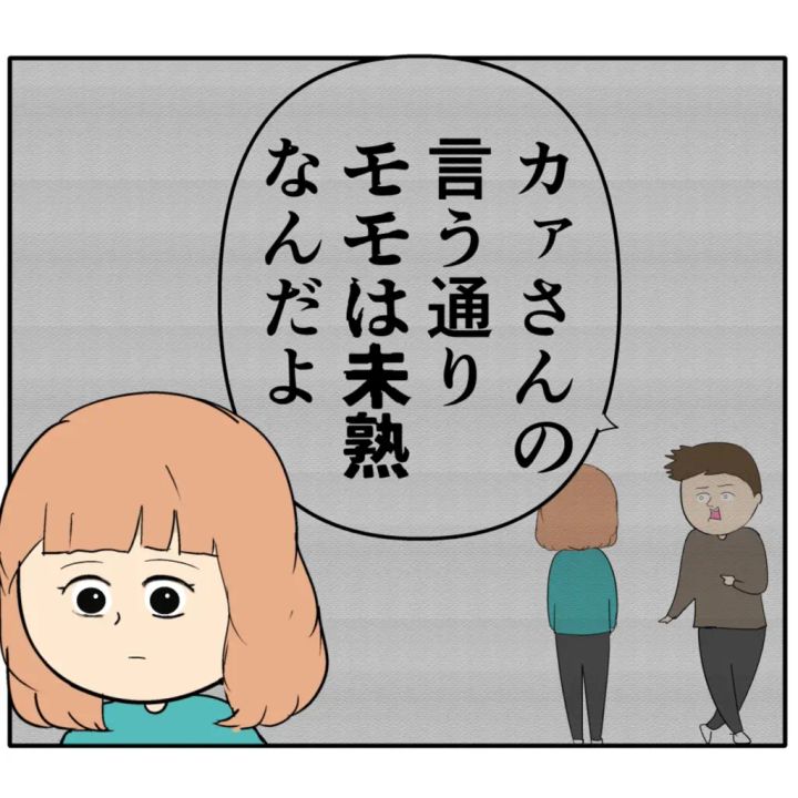 母親の言葉を信じて妻のモモさんを責め続けた結果、離婚を切り出されてしまった三郎さん。「やっと目が覚めた。離婚は考え直して」とモモさんにお願いすると、モモさんは「三郎の目が覚めて良かった。おかしくなってたもんね」と微笑み、「人だから間違う事もあると思う」と静かに言いました。