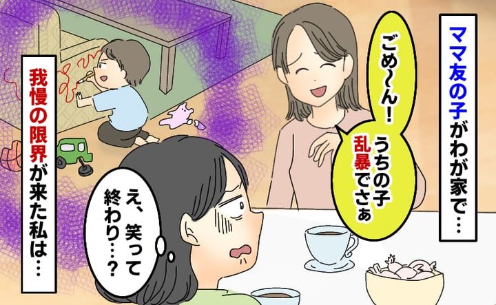 しかし、それが毎回となるとさすがに気持ちが重くなるのが正直なところ。Aくんママはそのたびに「ごめーん、ほんと男の子って乱暴でさ〜」と謝ってくれますが、どこかもう諦めている様子で、野放しです。大切にしていた雑貨を壊されたときは、「これは弁償してもらいたいくらいショックだな……」と心の中で思いましたが、Aくんと仲良く遊ぶ娘のことを思うと、Aくんママとの関係を壊したくない気持ちにもなり、素直には言えませんでした。