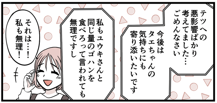 普通のことを普通にできないこともあります。タエちゃんがテツに悪い影響を与えると心配していましたが、私だってこの考えはテツのことしか考えられていなかった証拠。