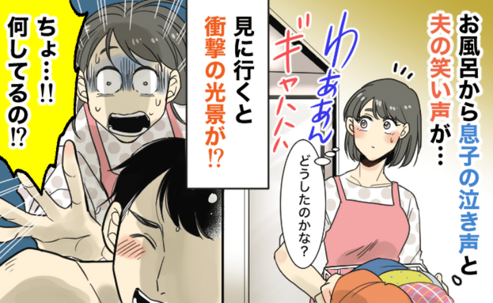 普段仕事が忙しく息子との関わりが少ない夫は、週末はなるべく一緒にお風呂へ入ることで触れ合う時間をとろうとしています。里帰りから戻ったその日も、夫がお風呂に入れていました。すると、お風呂から夫の笑い声と息子の泣き声が続いていたため、気になって覗いてみると……。夫のまさかの行動に、怒り心頭に達した体験をお話しします。