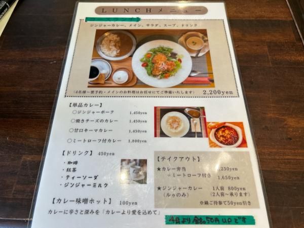 私たちは当日にお邪魔したので、単品のカレーとドリンクを注文。