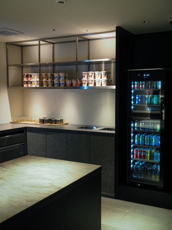 ラウンジにはこだわりの軽食やドリンクなどがたくさん。
