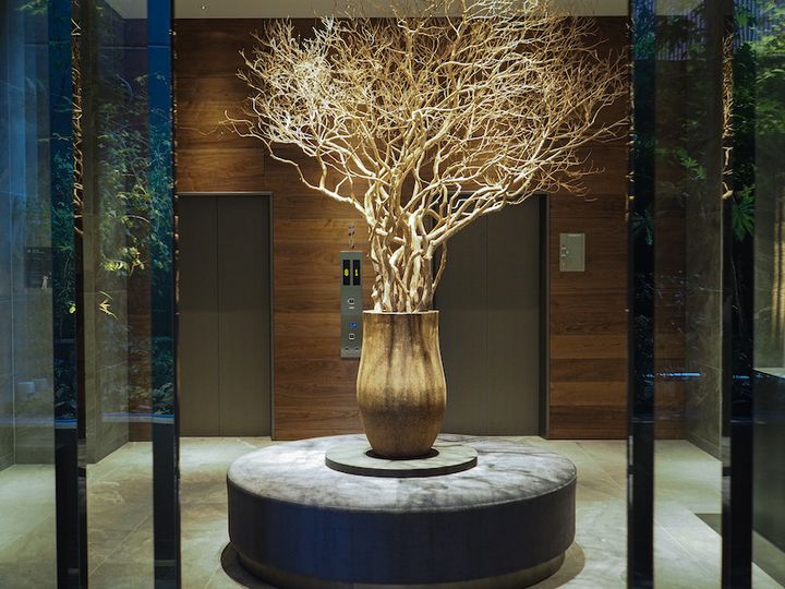 ホテル1階のエントランスの大きな木の装飾。
