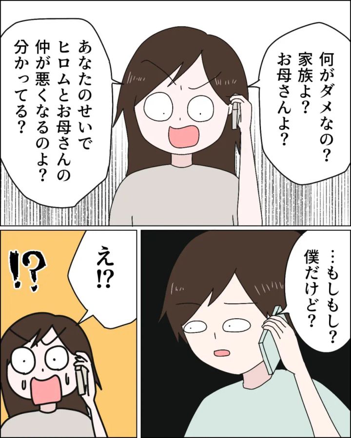 レイさんは話しながらどんどんヒートアップしてきました。「何がダメなの?家族よ?お母さんよ?あなたのせいでヒロムとお母さんの仲が悪くなるのよ?分かってる!?」