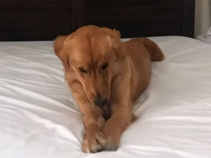 シーツを広げるたびギュッギュ! 犬さんの大興奮ぶりに飼い主さんも笑顔に