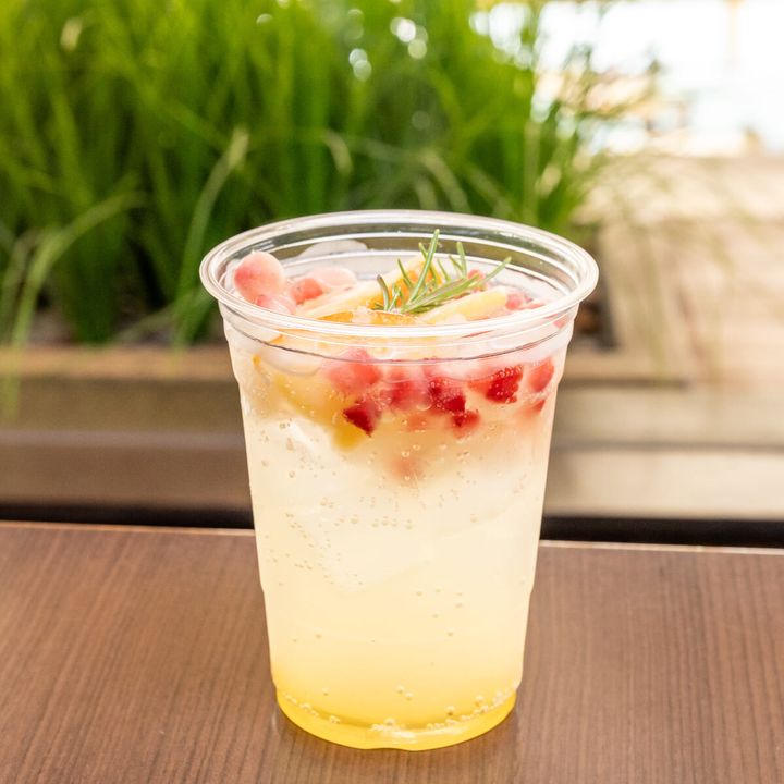 白ブドウとパッションフルーツの甘いシロップにソーダを加えたドリンク。