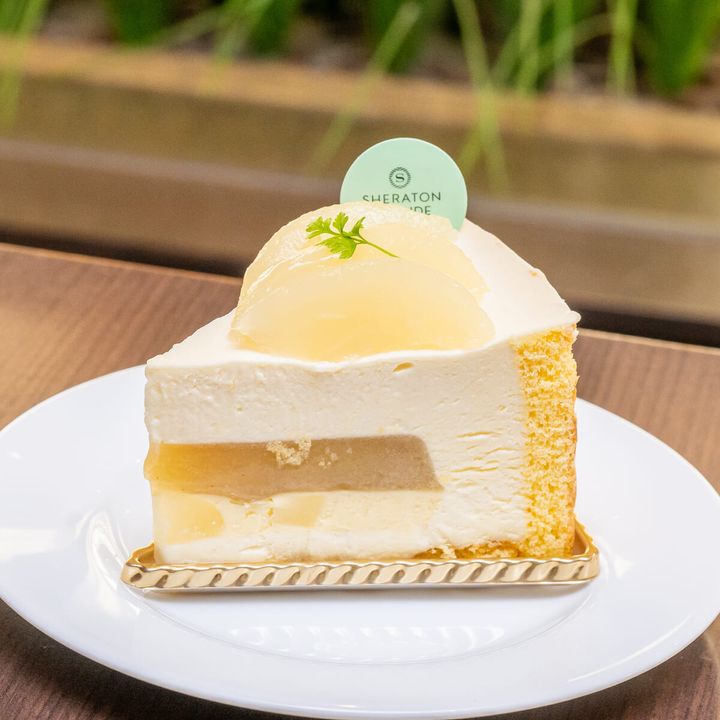 中心にはとろけるような洋梨のジュレとなめらかなクリームを閉じ込め、トップには旬の洋梨の果肉が添えてあります。