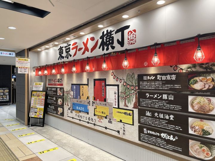 「東京ラーメン横丁」は、7店舗のラーメン店が集結するスポット。こってりした家系から、さっぱりとしたラーメンまで、豊かなジャンルの人気店が揃っています。