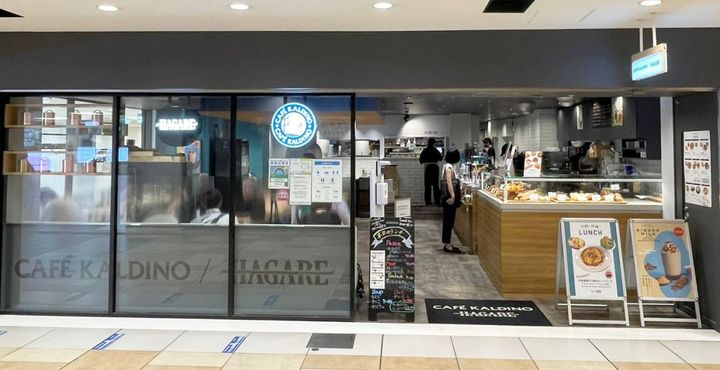 「カフェカルディーノ /HAGALE(はがれ)」は、「カルディ コーヒーファーム(キャメル珈琲)」の関係会社であるキャメルキッチンが手がけるベーカリーカフェ&レストラン。スタイリッシュな店内で、こだわりのカフェメニューやワインに合う料理が楽しめます。