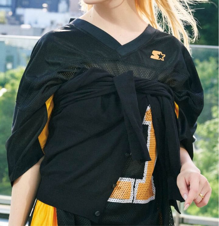 3. 【30代スナップ】「ユニホームT」はカーデを巻いてビスチェ風に!大人が真似したいスポーティコーデ