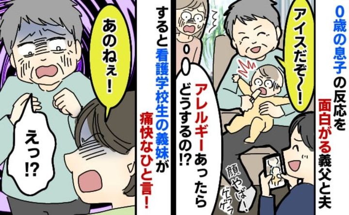 夫と義父「顔やば!」面白がって0歳の息子にアイスを…注意するも茶化され…すると看護学生の義妹が?