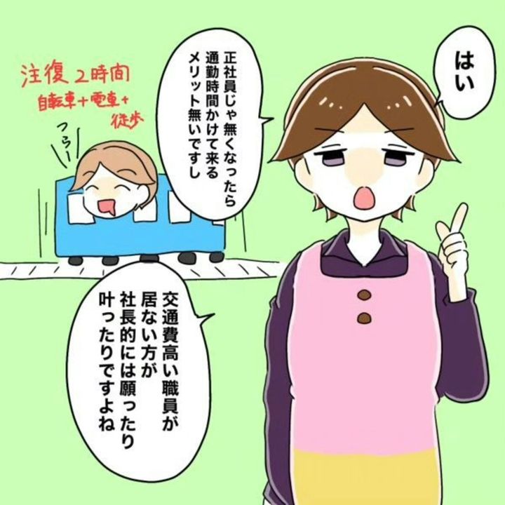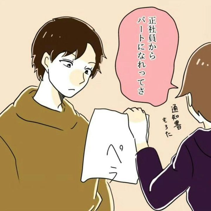 正社員からパート職員へ働き方を変えるよう、ほぼ強制的に通知されたなしえさんは、夫にその事情を相談しました。夫はパートとして働くことではなく「いつ辞めるの?」となしえさんの職場のあり得なさに憤ります。