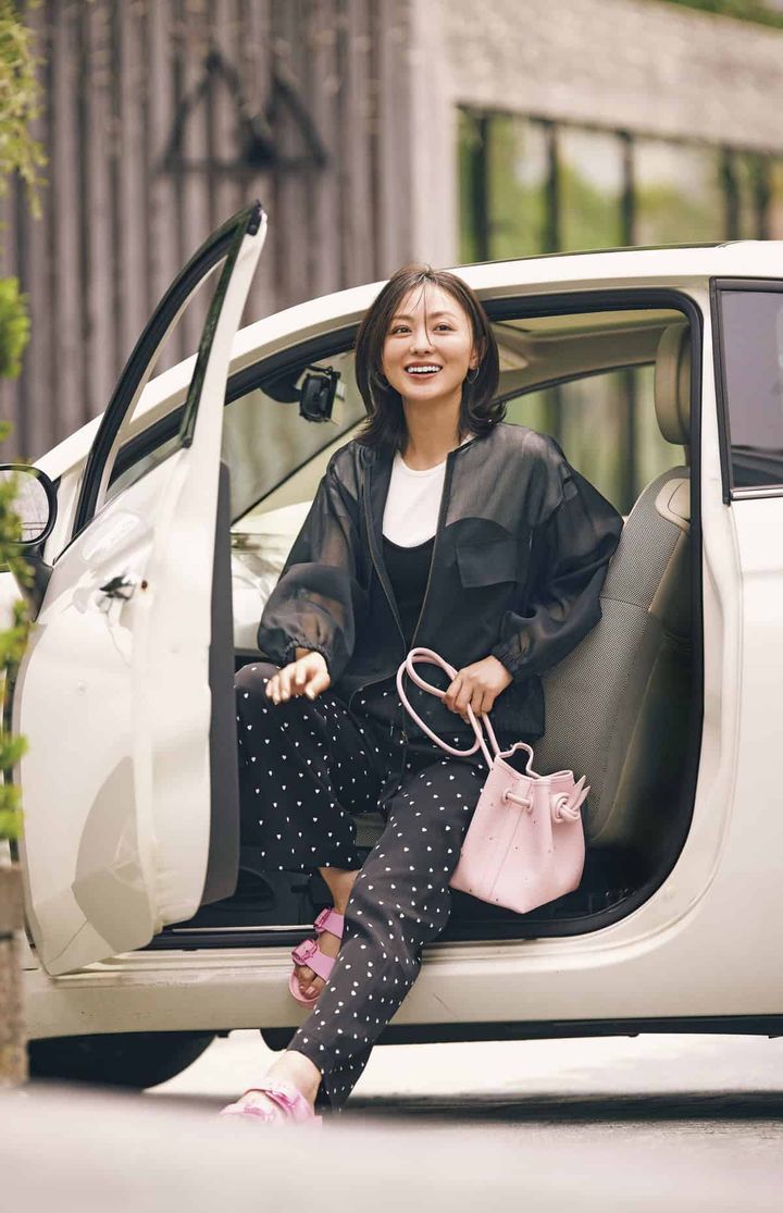 ワンピース¥25,300 インナーキャミソール¥6,380(エミ/エミ ニュウマン新宿店)バッグ¥18,700(メイド イン マダ/ジャック・オブ・オール・トレーズ プレスルーム)サンダル¥31,900(ピッピシック/ベイジュ)ピアス¥39,600イヤーカフ¥36,300(ともにリューク)(ミースロエ)