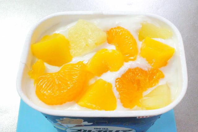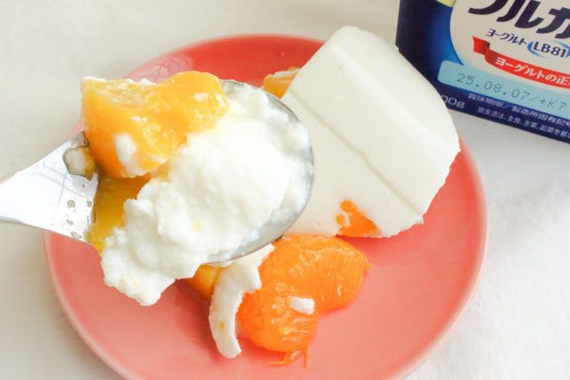 口に入れると、缶詰みかんの甘さとジューシーな果汁、さっぱりとしたヨーグルトの味わいが混ざり合って、ほんのり甘い。
