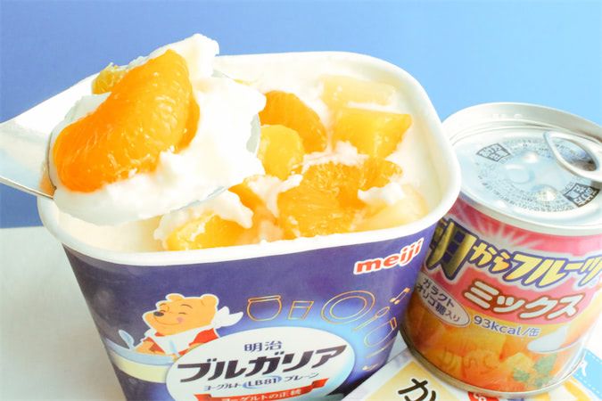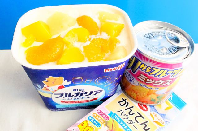 【パックそのまま!混ぜて冷やすだけ】缶詰フルーツ入れて「ヨーグルト寒天」作ろう!瑞々しくてぷるん♡