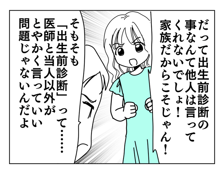 私(ミカコ)は、夫のコウヘイと、現在8歳のカナと5歳のリオの姉妹を育てています。私の5歳年上の姉は、昔から優しくてあまり怒らない人でした。そんな大切な姉が結婚をして、しかもとんとん拍子に妊娠まで! もう高齢だから子どもは難しいかな~なんて思っていたので、自分のことのように嬉しかったです。それなのに、いきなり姉から「今後は連絡を控えさせてください」とメッセージが……。母が姉に連絡すると、姉は私が出生前診断をすすめたことが原因みたいな言い方をしてきたのです。母も別に私は悪くないって言います。なので母と姉の家におさがりを届けに行ったら、姉から絶縁宣言をされてしまって……?