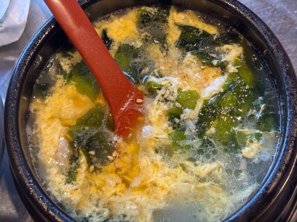 こちらはタレ漬けハラミ(1848円)。カンテイポウさんはお肉によってタレを変えていますよ。 これで一人前?のたっぷり牛骨わかめスープはこちら(638円)。