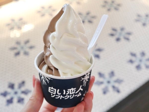 店内では北海道産の生乳と「白い恋人」のホワイトチョコレートを合わせたソフトクリームも販売中。