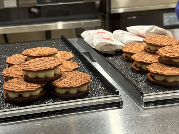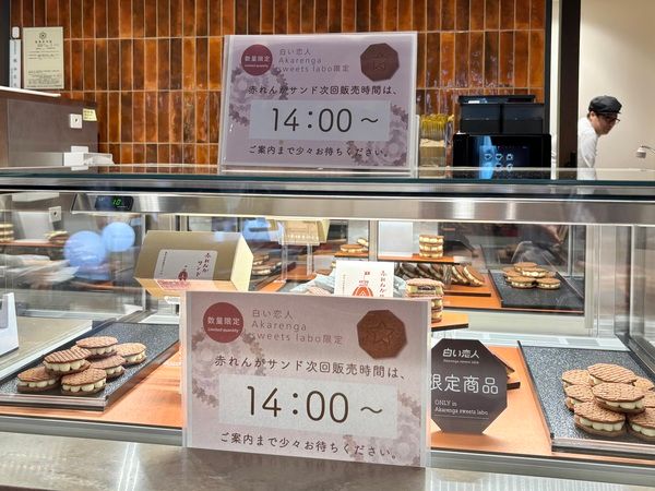 ここだけの限定スイーツとして注目を集めているのが「赤れんがサンド」。午前と午後の一日2回、数量限定で店頭に並びます。午前は開店直後の10時、午後は13時もしくは14時ごろを目安に販売がスタート。
