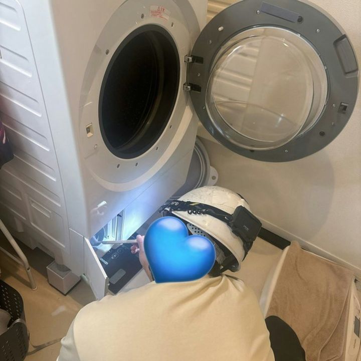 洗濯機を掃除する夫→完全に『業者』妻が撮影した写真に10万いいね「頼もしい」「ヘルメットするの強い」