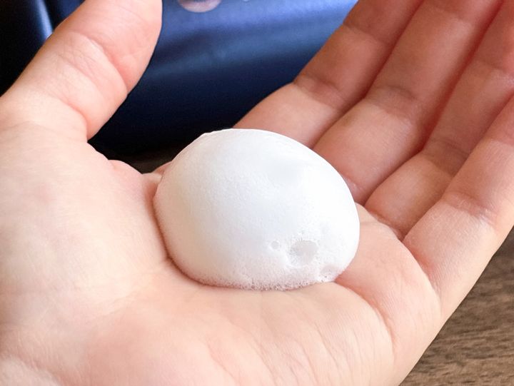 ホイップしたての生クリームのように、きめ細やかで濃密な泡が出てきました。髪になじませても泡がパチパチとつぶれることがない、もっちりとシルキーな泡質に期待がふくらみます。