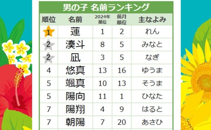 <2025年7月生まれ>男の子の名前ランキング