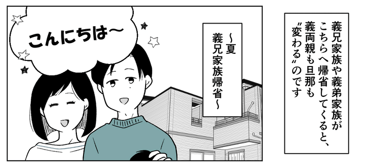 普段は義母との関係も旦那との関係も良好です。けれど、この仲が変わるのは、旦那のきょうだいが来たとき。