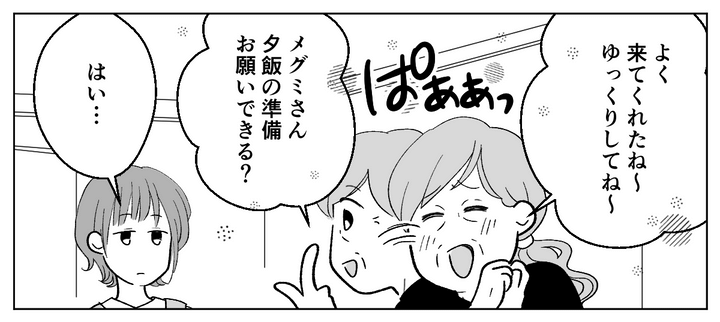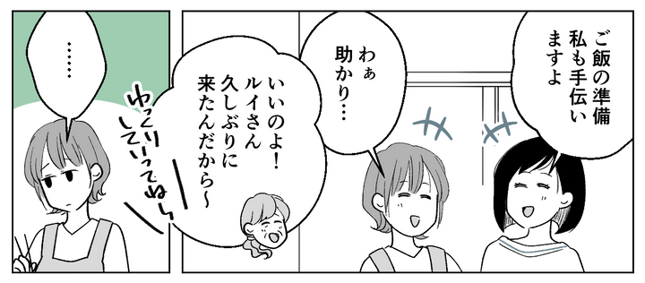 義母は久しぶりに会えるわが子や孫が嬉しいのか、このときだけ私を家政婦のように扱います。義姉に手伝ってもらったほうがはるかにラクで効率的なのに……。「ゆっくりして~」としか言わず、何もさせようとしません。