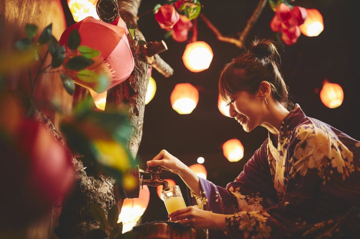 リンゴの木に取り付けてある蛇口をひねると、なんと!リンゴジュースが出てきます。ウェルカムドリンクとしてチェックイン後に飲むのはもちろん、温泉に入浴する前後の水分補給にもおすすめ。こちらは通年設置されているので、青森屋に滞在したらぜひ体験を。おいしいリンゴジュースでのどを潤してみて。