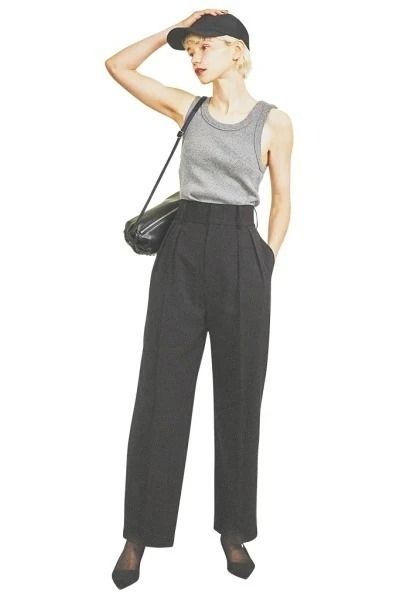 タンクとキャップをセットで考え、小物も含めてボトムもコンサバに。ラフとキレイがバランスよく同居した、バランスのいいスタイリングに仕上がる。