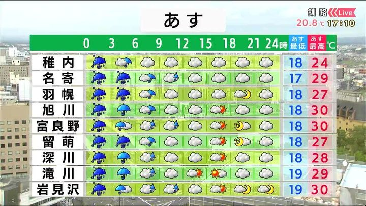 ・あすの札幌の朝昼晩の天気